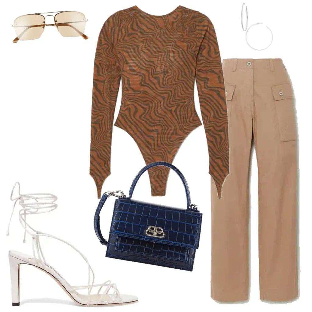 Less is more with this designer look. Pair a sleeveless tank with metallic sandals and a body chain to spice things up!